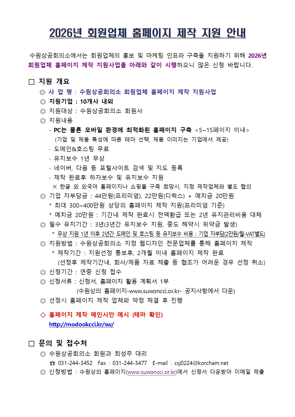 대표전화 : Tel : 031-244-3451-5 문의 : suwon@korcham.net