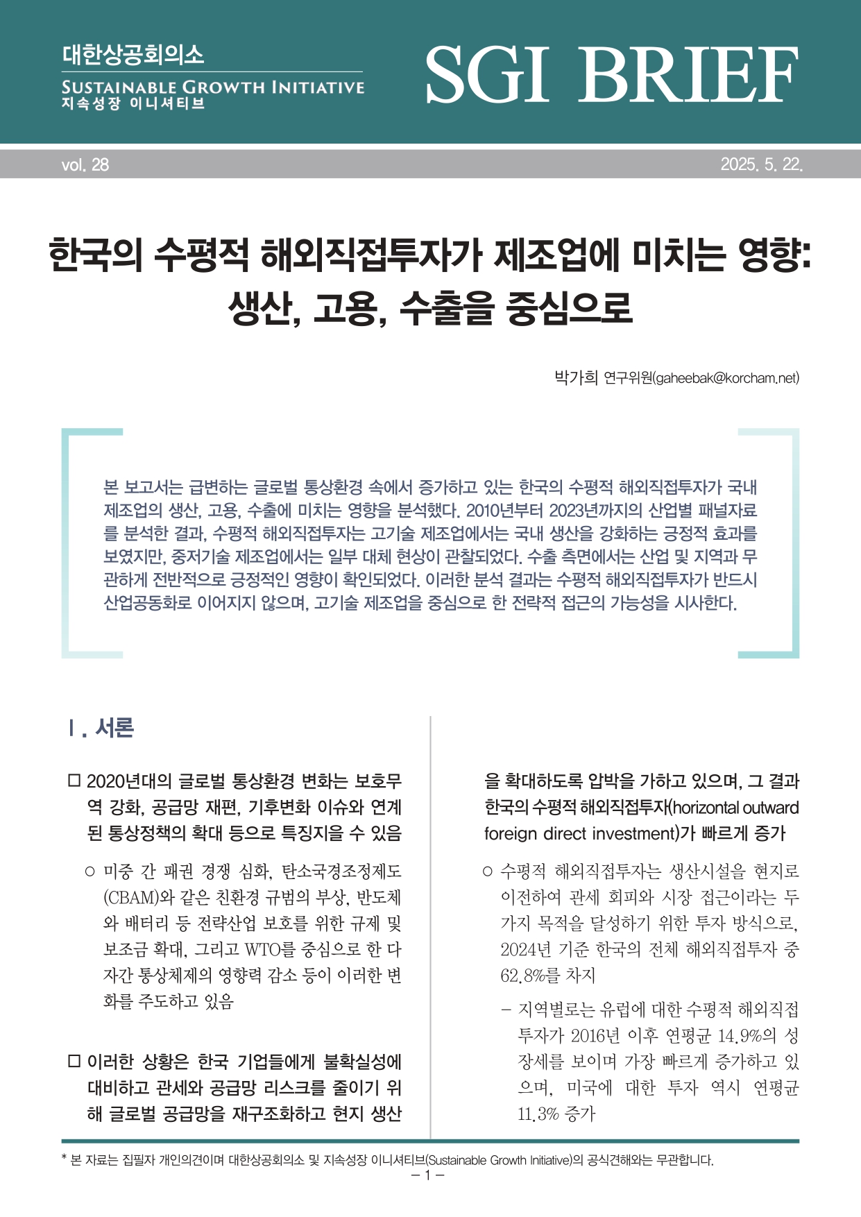 | ‒ | [SGI 브리프] 한국의 수평적 해외직접투자가 제조업에 미치는 영향: 생산, 고용, 수출을 중심으로 |