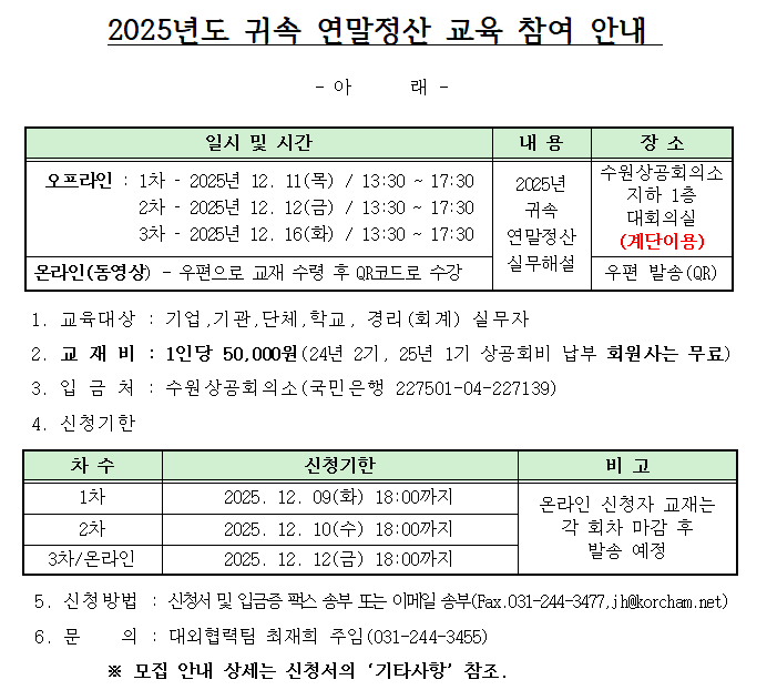 | ‒ | 2025년도 귀속 연말정산 교육 참여 안내 |